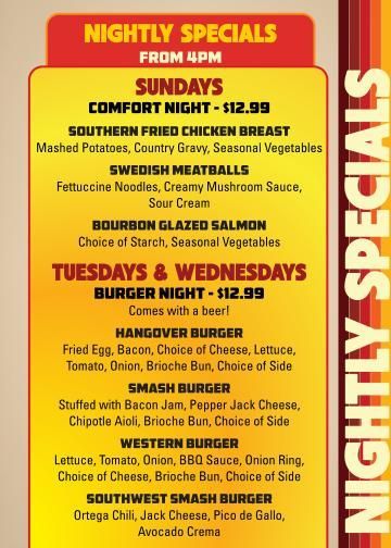 Come back to explore weekly, daily and holiday dining specials as they become available!